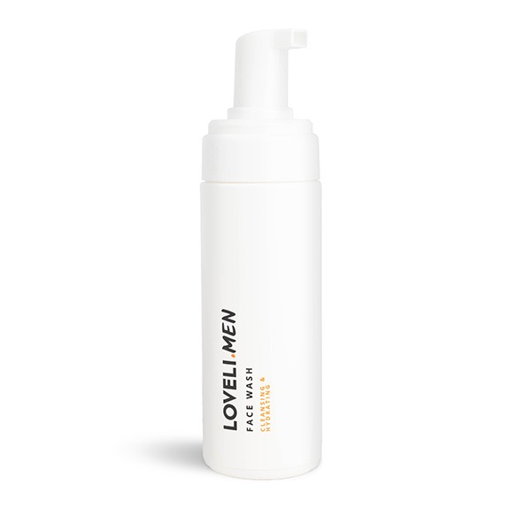 Loveli.Men Face Wash, extra dik zodat ook de baard ermee gewassen kan worden. De Face wash van Loveli.Men is een super zachte foam gemaakt van kokosolie. De wasgrondstof is mild en niet irriterend. De kokosolie geeft tevens een extra verzorging aan de baard.